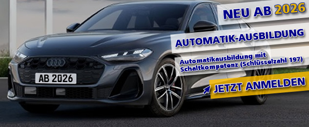 Ab 2026 biete ich Dir mit meiner nagelneuen Audi A5 Limousine die Möglichkeit der Automatikausbildung und Automatikausbildung mit Schaltkompetenz (Schlüsselzahl 197).